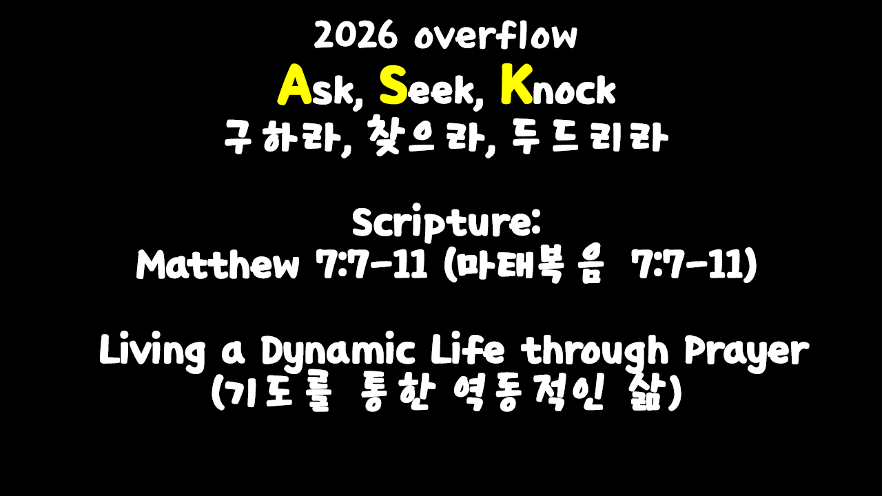 2026 overflow Ask, Seek, Knock 구하라, 찾으라, 두드리라