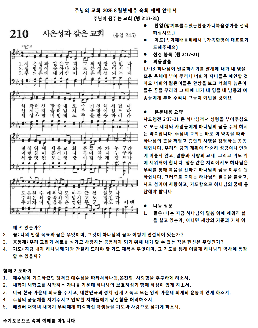2025 8월 넷째주 주님이 꿈꾸는 교회 (행 2:17-21)