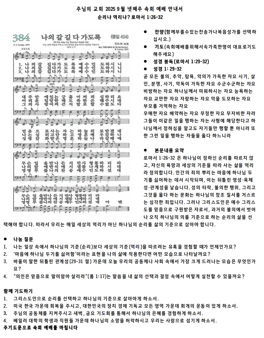 주님의 교회 2025 9월 넷째주 로마서 1:26-32
