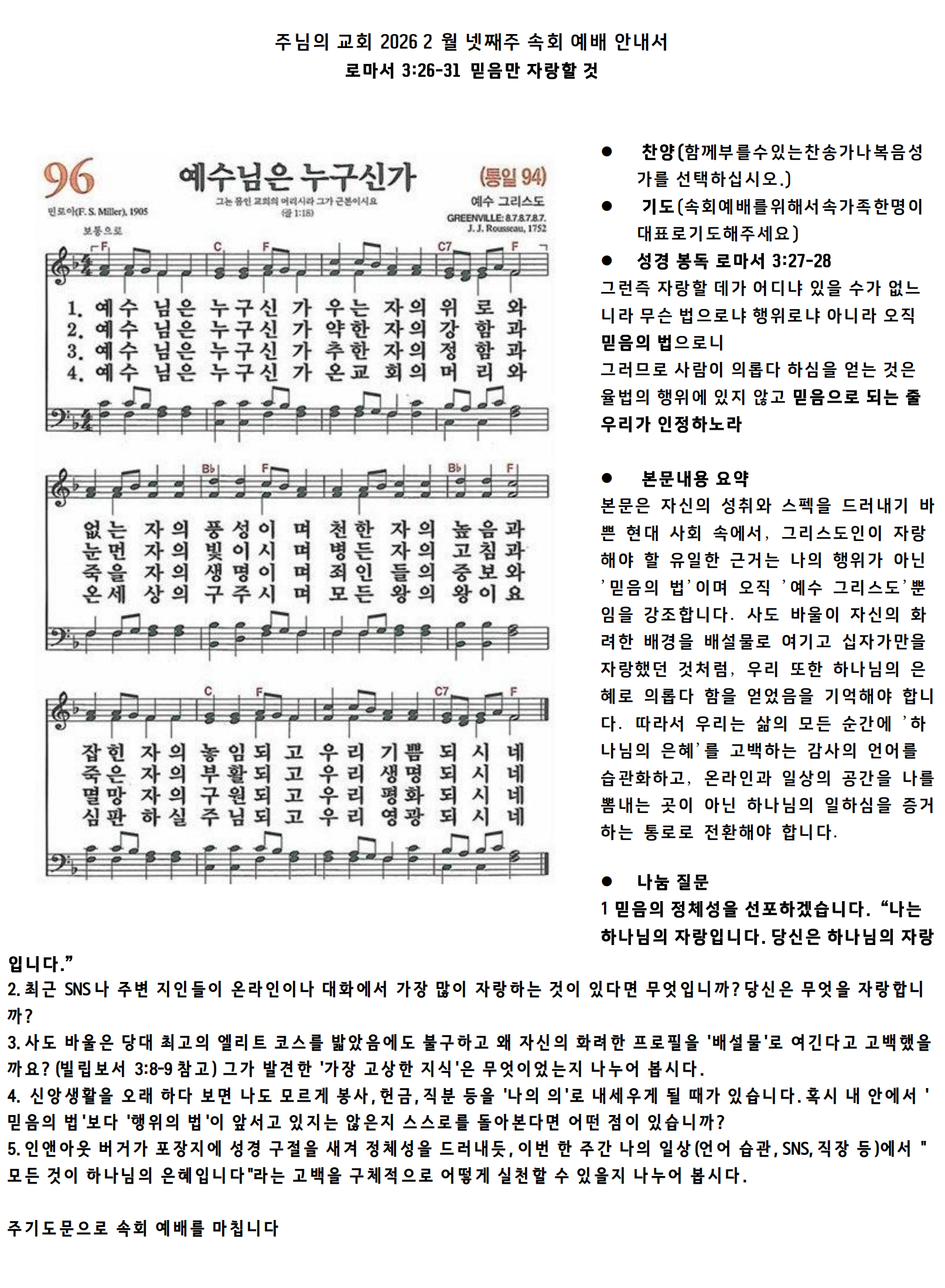 주님의 교회 2025 8월 다섯째주 속회 예배 안내…