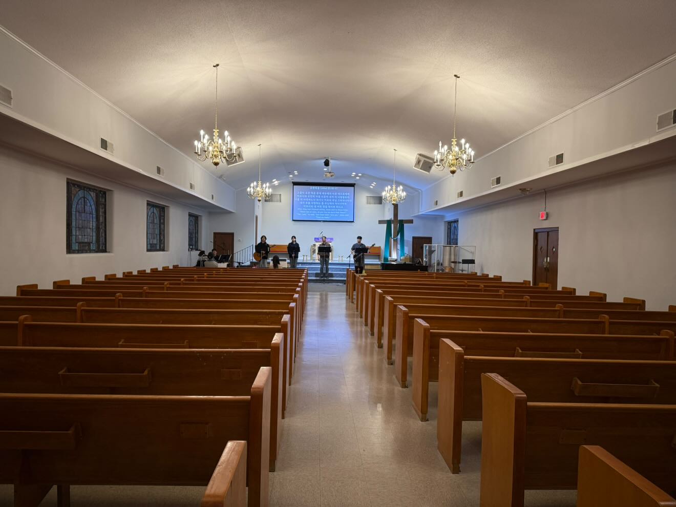 그러나 주님의 교회 찬양팀은 환경과 조건에 상관없습니다. 빈 예배당에서 예배를 인도함에도 불구하고 성령의 임재 속에서 뜨겁게 찬양함에 큰 감동이 되었습니다.
