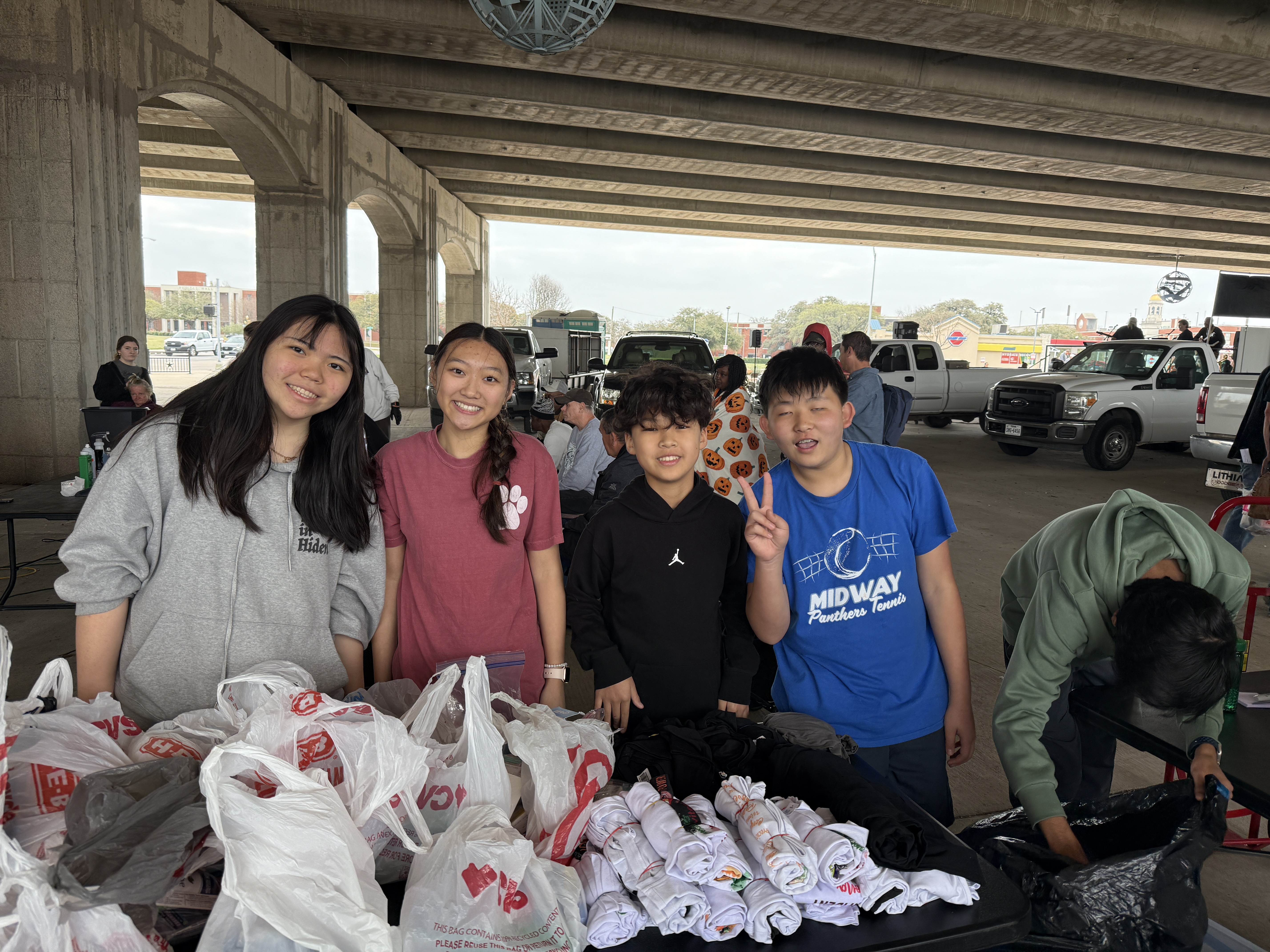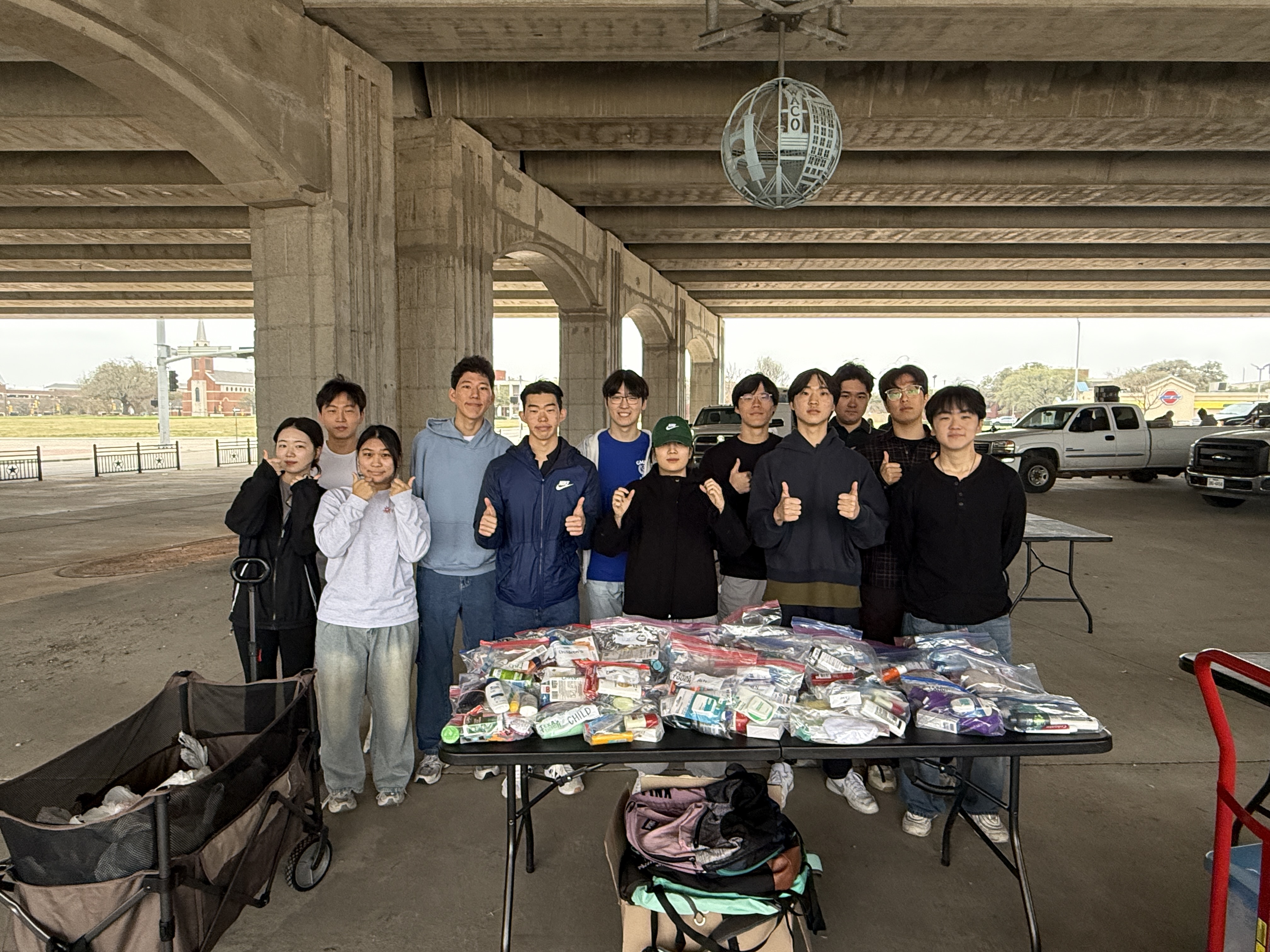 지난 주일 아침, 우리 대학부 지체들과 Youth들은 Baylor @baylorpublichealth health 교수이신 권용경 집사님과 그의 학생들과 함께 학교앞 35QJS 도로 밑에 모이는 'Church Under the Bridge'에서 동역하는 시간을 가졌습니다.